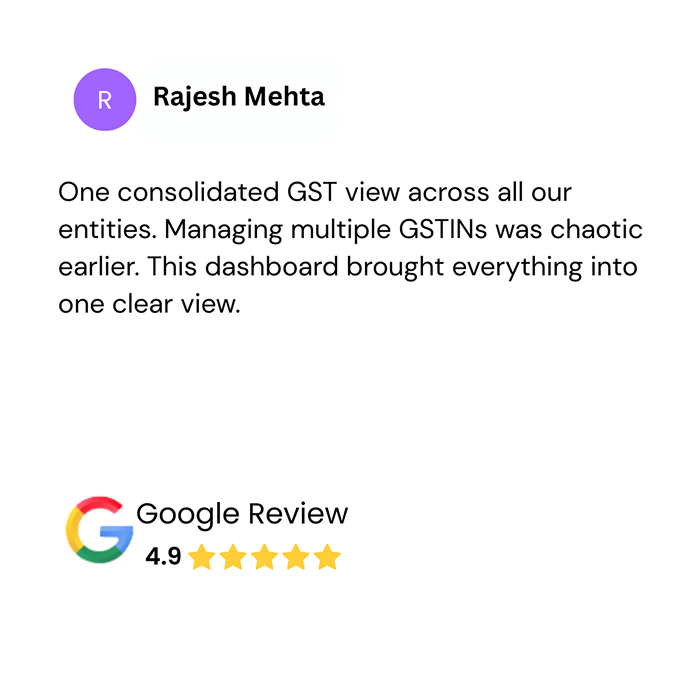 A centralized dashboard that helps CFOs, accountants, and tax professionals monitor GST compliance, spot risks, and make informed decisions.
